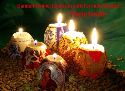 Lumina Sfanta de Paste sa va calauzeasca in viata, sa va dea sanatate si fericire, putere de munca pentru a va implini visele, liniste in suflet, caldura in inimi si sa aveti parte numai de bine. Va dorim, Paste fericit!