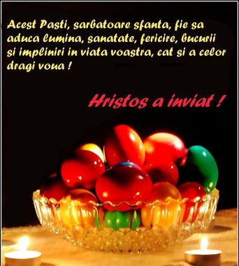 Lumina Sfintei Invieri sa patrunda in sufletul si in inimile voastre bucurandu-va de minunea Invierii Domnului nostru Iisus Hristos! Va dorim, Paste fericit!